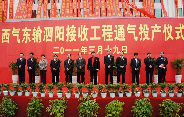 宿遷市原副市長(zhǎng)趙深,縣委書記李榮錦,縣人大常委會(huì)原主任何平,縣政協(xié)主席陳富勝等四套班子領(lǐng)導(dǎo),西氣東輸管道銷售公司總經(jīng)理助理李世泉等出席西氣東輸泗陽(yáng)接收工程投產(chǎn)儀式